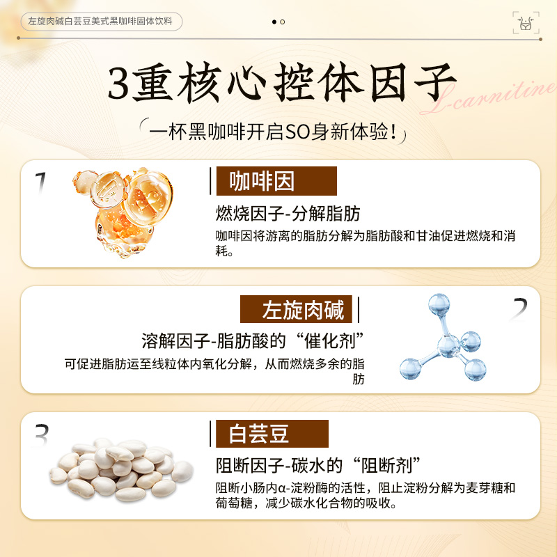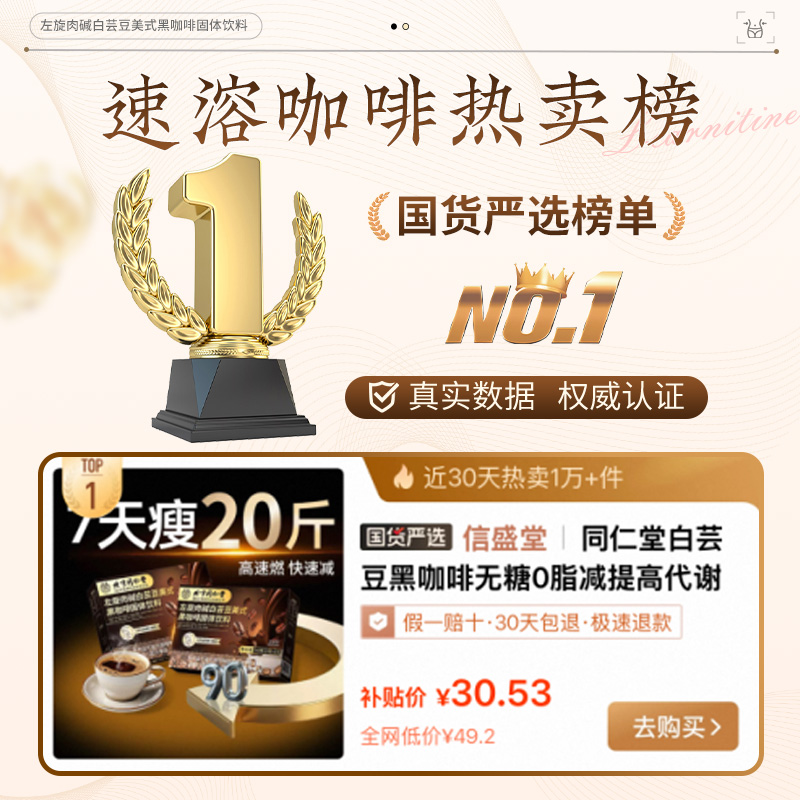 同仁堂左旋肉碱白芸豆黑咖啡无糖0脂提神高代谢减燃肥脂美式速溶
