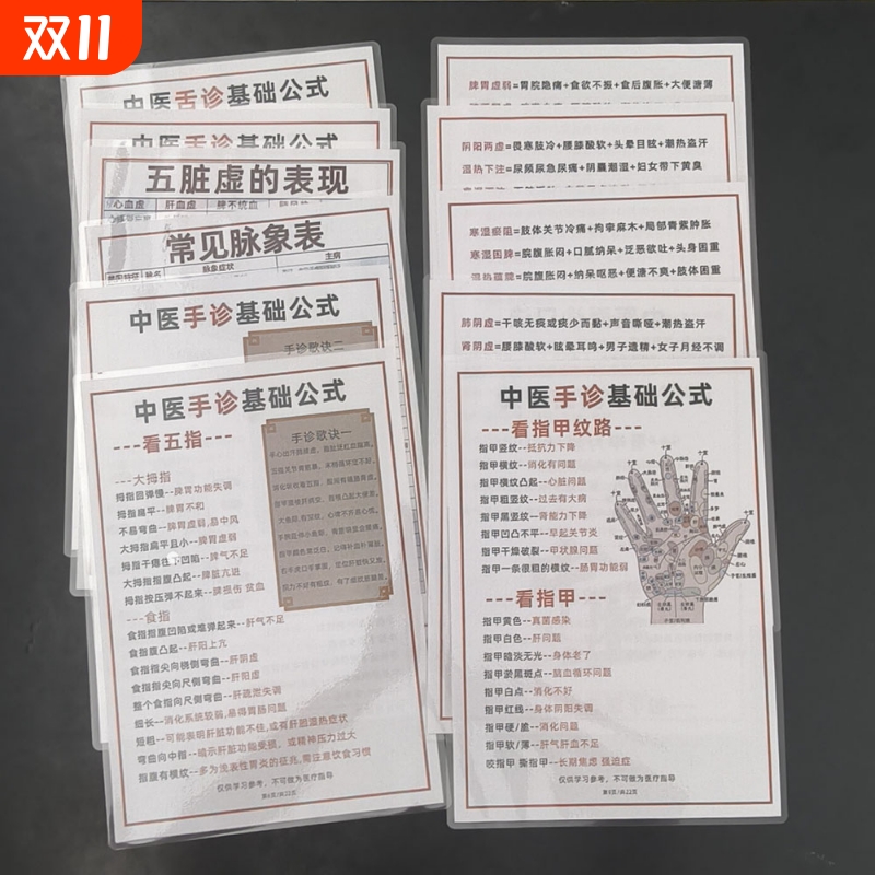 中医诊断公式手诊面诊脉象传统基础理论A4防水耐用塑封卡片舌诊口诀