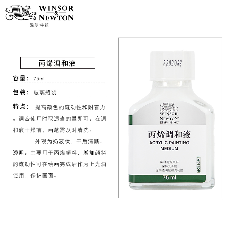 温莎牛顿丙烯调和液75ML丙烯颜料稀释剂调合液透明辅料丙烯媒介剂玻璃瓶塑料瓶装