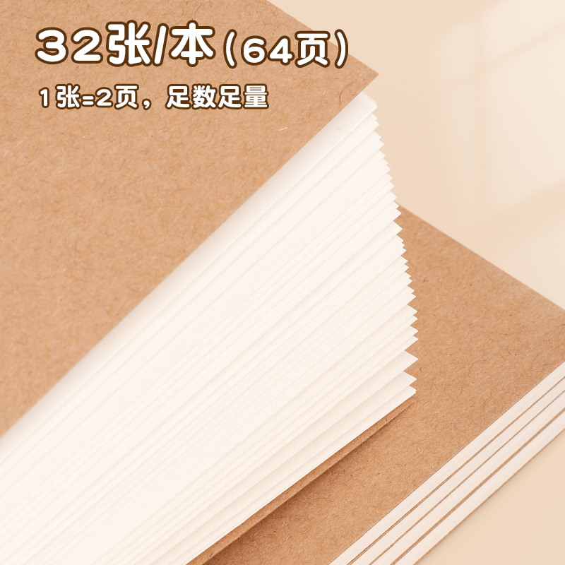 复古牛皮纸笔记本超厚空白本子加厚白纸本草稿本学习可平摊高颜值本记事本日记本a4a5小方格写作本大学生初中