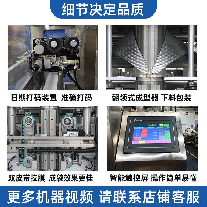 全自动膨化食品爆米花虾条薯片包装机称重颗粒翻领立式制袋封口机