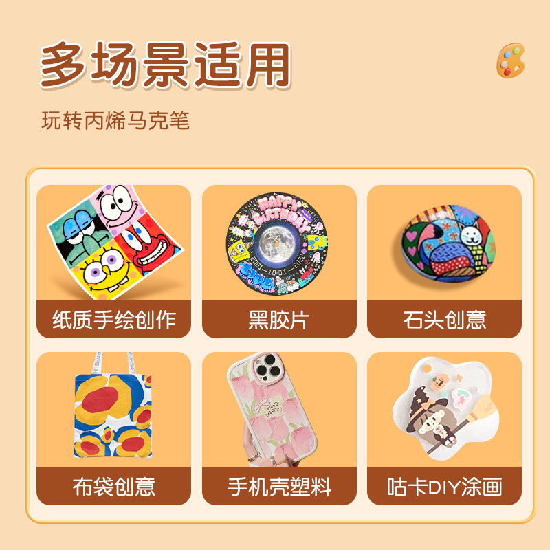 恩米小黑盒直液式丙烯马克笔软头颜色笔小学生幼儿园画画美术专用