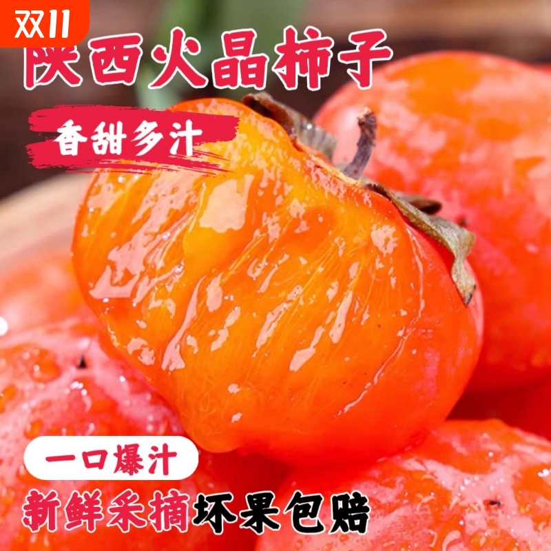 陕西火晶柿子新鲜现摘当季水果15粒起软甜可口水晶小柿子