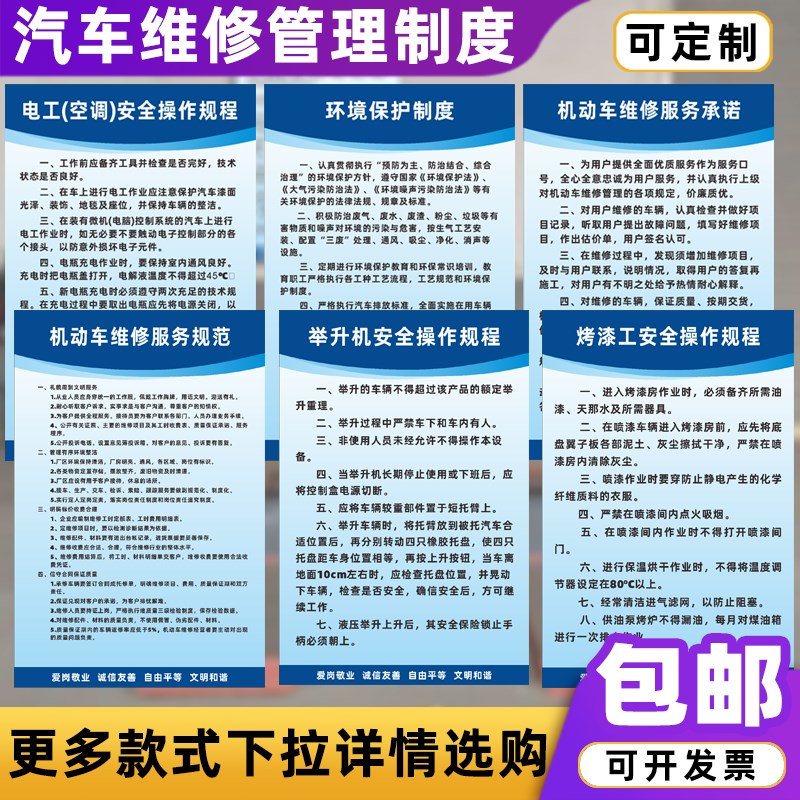 速发汽车维修管理制度汽修工安全操作规章设备管理及维护制度牌