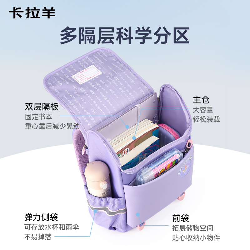 卡拉羊小学生书包减负护脊超轻儿童双肩包男孩女生初中生背包大容量高中生书包官方旗舰店正品