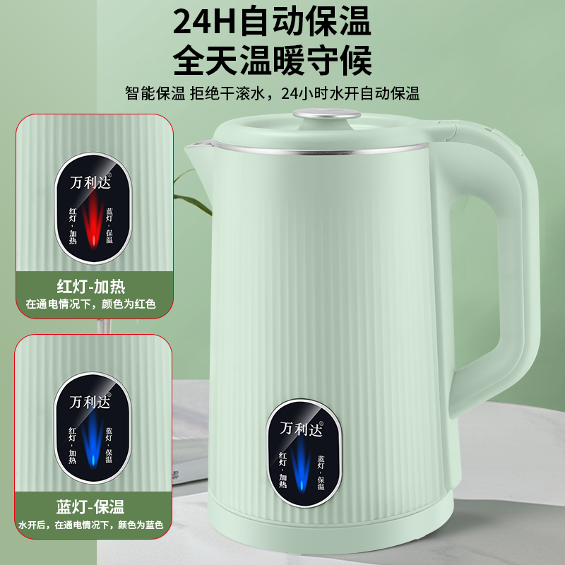 万利达电热水壶家耐用不锈钢断电智能保温一体热水壶大容量烧水壶