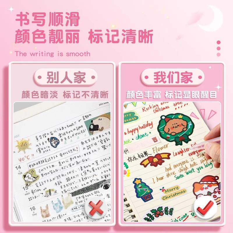 得力按动笔学生用高颜值全套荧光笔芯水性笔记号笔速干多色手账用画画彩笔彩色大容量