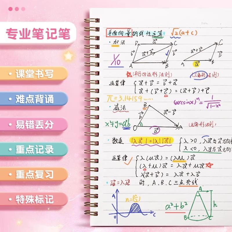 Planwith三色笔按动多色合一中性笔高颜值彩色学生做笔记专用标记笔多功能模块笔粉色红笔蓝笔错题订正记号笔