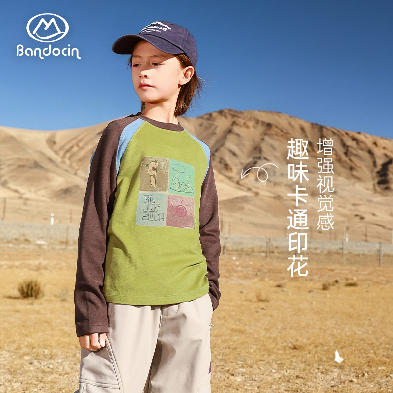 多多家男童长袖T恤儿童熊猫印花2025春秋季新款中大童插肩袖上衣