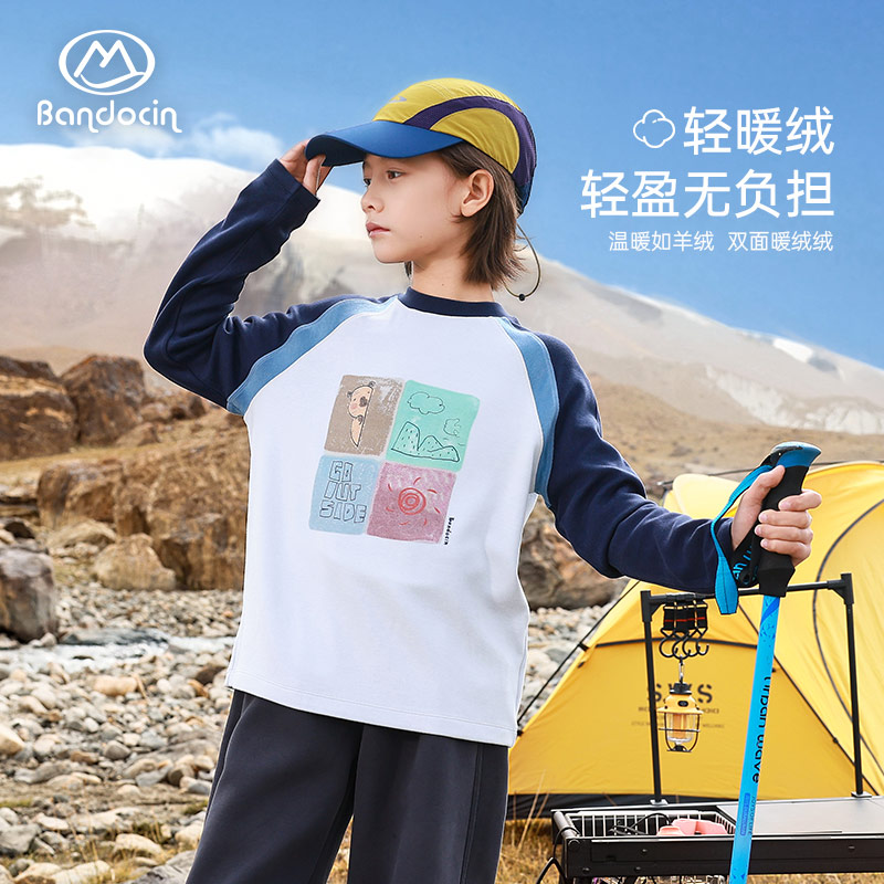 半度闲儿童双面澳绒打底衫t恤秋冬装加厚洋气新款男女童保暖上衣