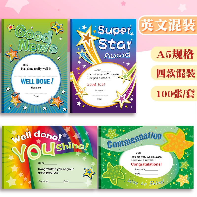 A5创意可爱表扬信小奖状幼儿园小学生一年级进步之星奖状纸数学语文英语铜版纸班主任通用奖励卡儿童荣誉喜报