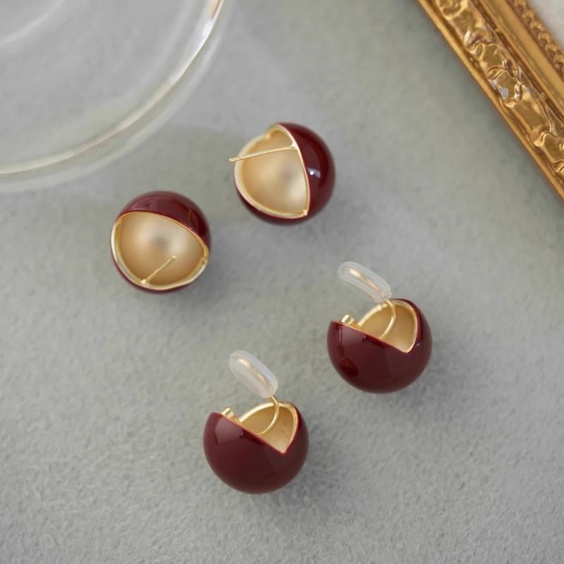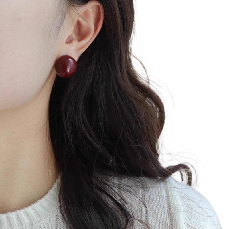 因缺斯汀【红豆】红色球球耳钉显脸小无耳洞蚊香盘耳夹小众百搭女