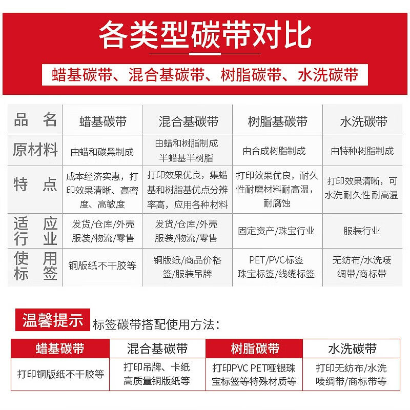 TSC树脂基碳带条码机色带标签打印机色带热转印标签机色带清晰防