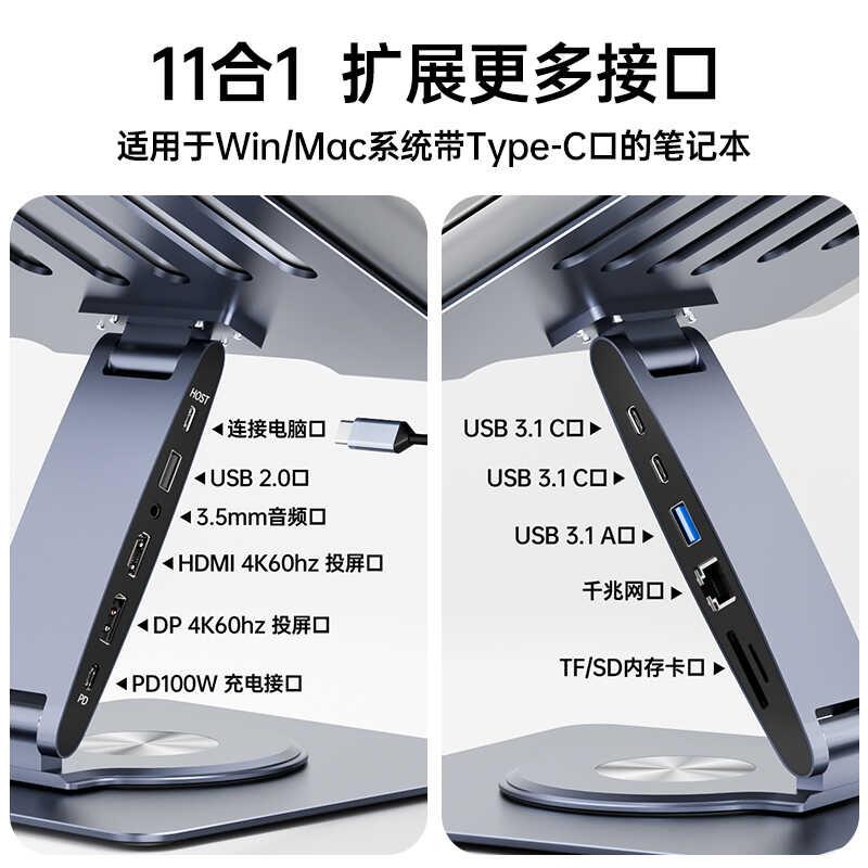 笔记本拓展坞支架多功能扩展高档铝合金增高散热旋转平板电脑支架