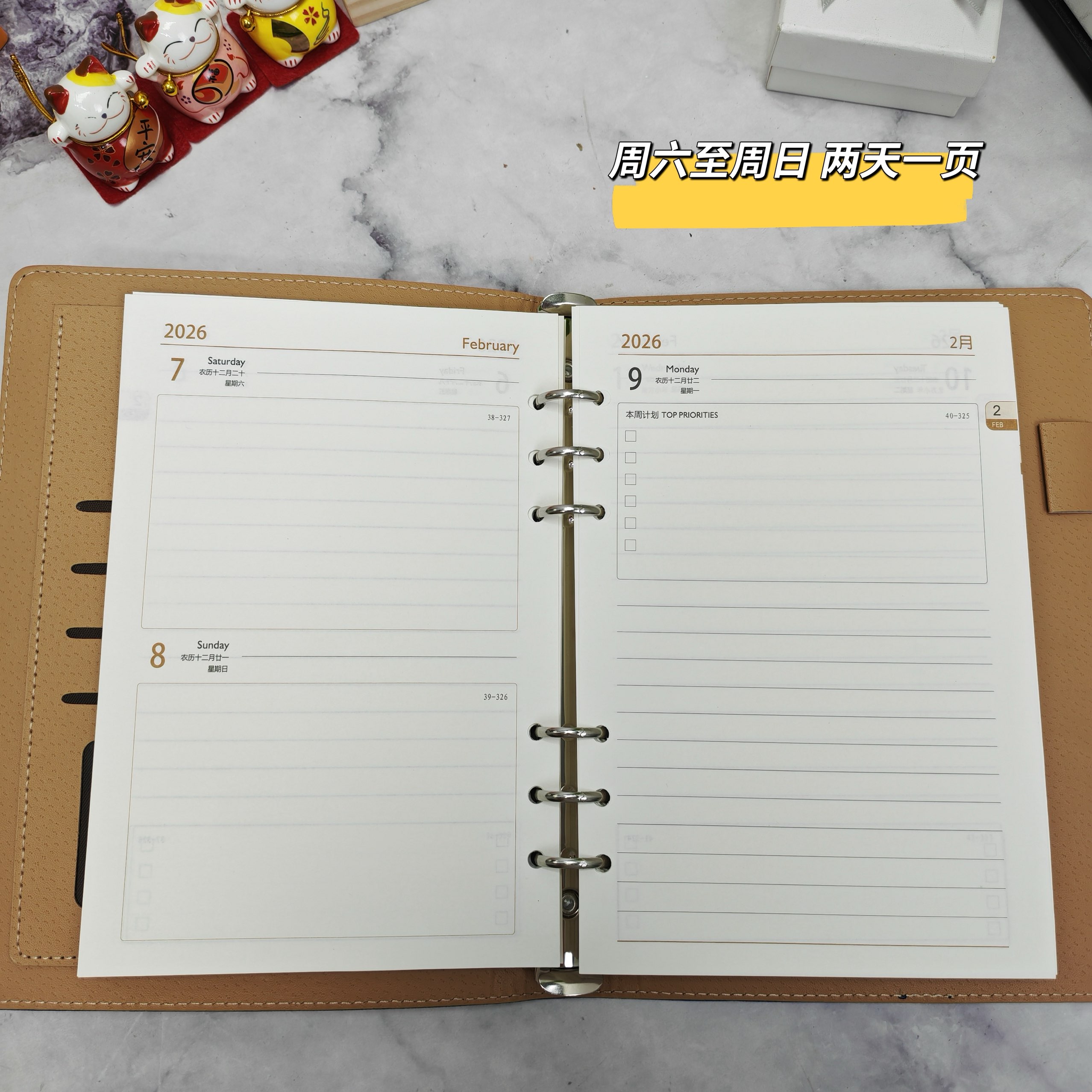 卡诺卡2025-2026年日程活页A5替换芯一天一页周计划日历效率手册内页365天时间管理日期月度行事表会议年历本