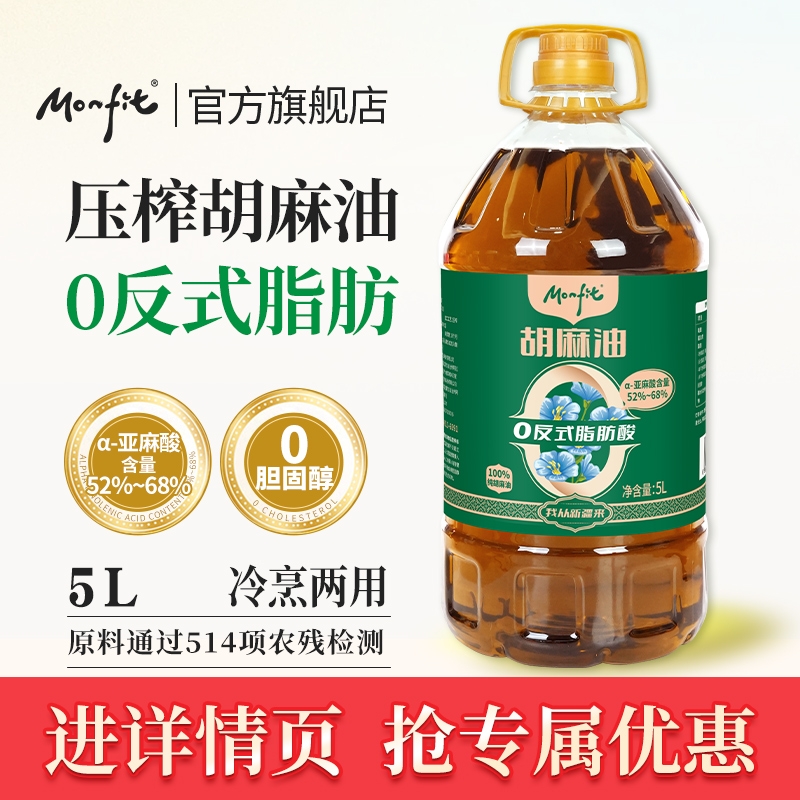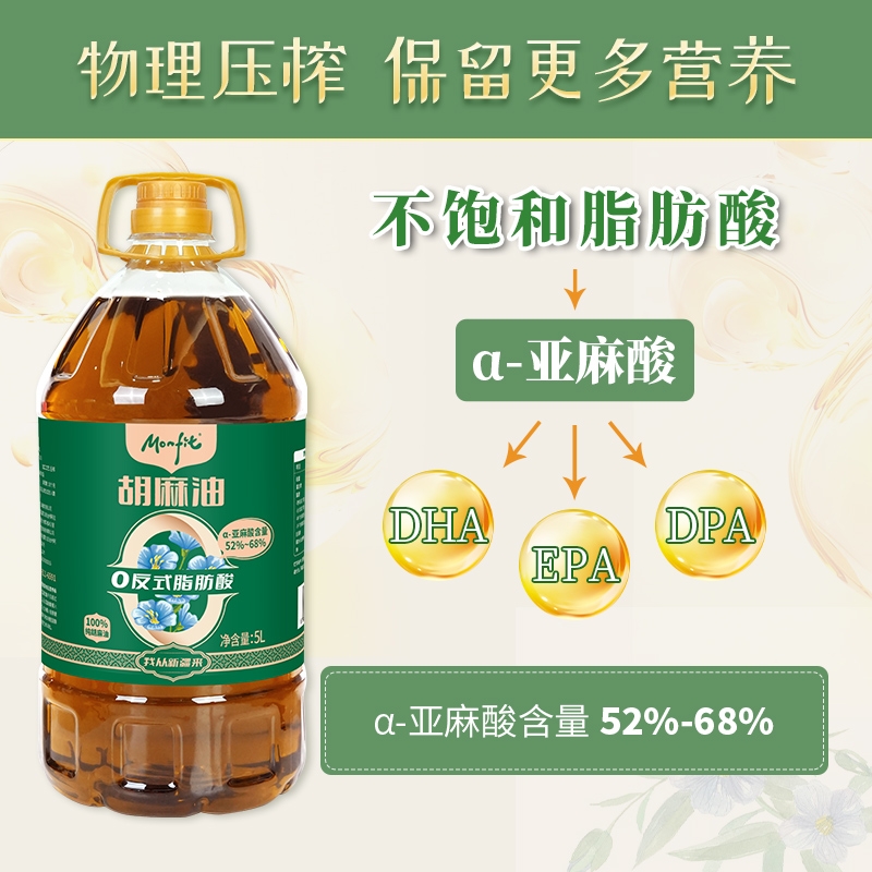 新疆压榨胡麻油纯正0反式脂肪酸家用热炒亚麻酸营养食用油5升桶装