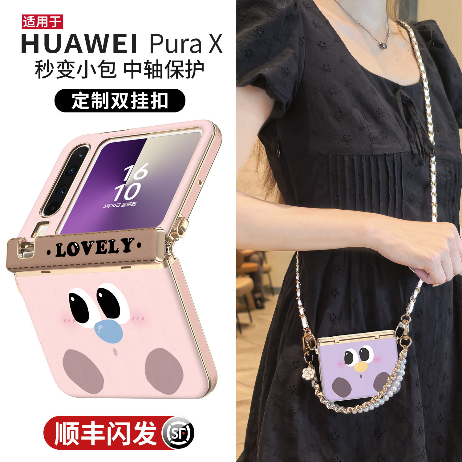 斜挎带挂绳适用于华为purax折叠款手机壳pura典藏版x磁吸中轴全包外壳pure超薄px女小众不撞款趣味可爱保护套