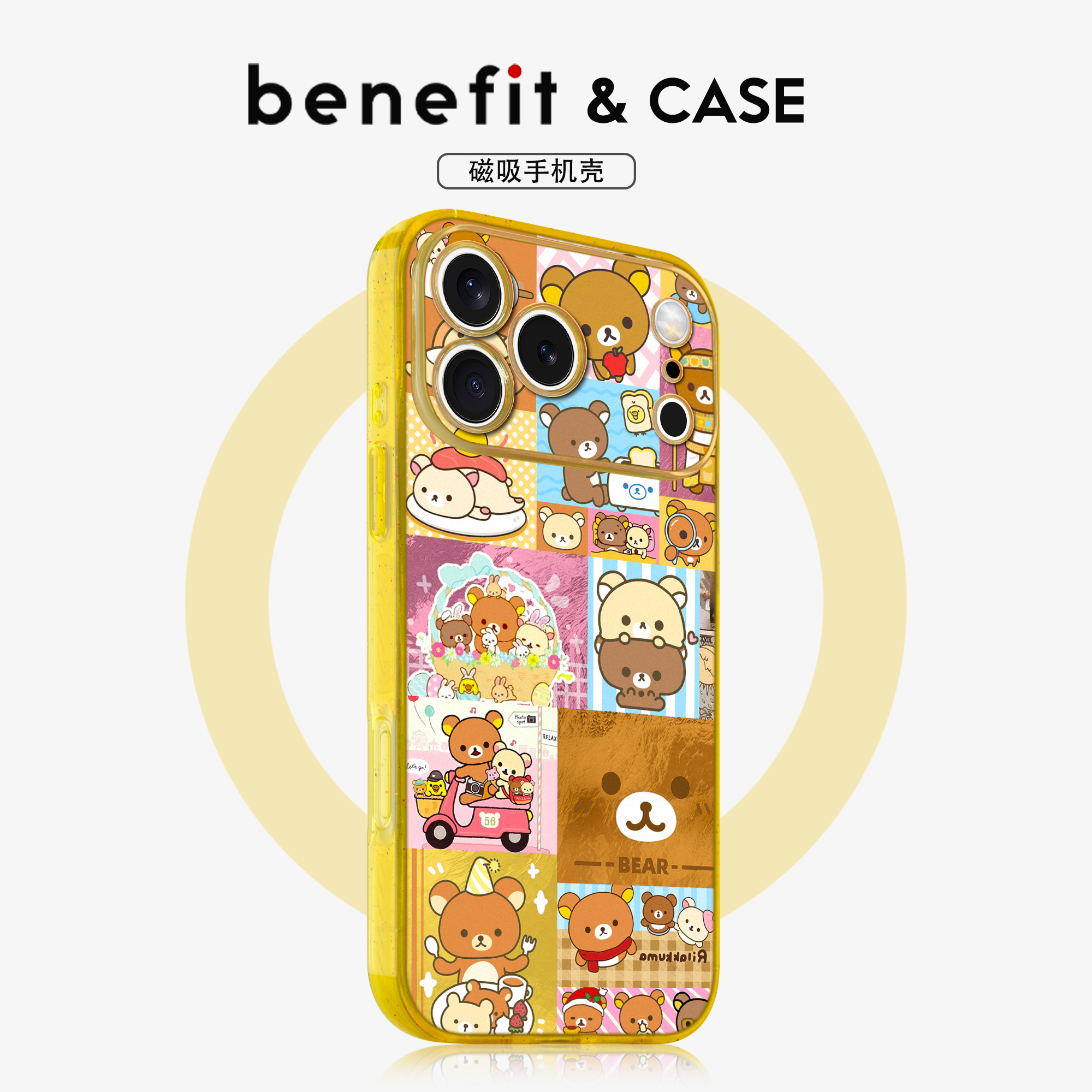 benefit可爱拼接乐观小熊17适用于iphone16promax苹果15PRO晶盾磁吸手机壳13新款14套12冰川纹防摔彩色边框