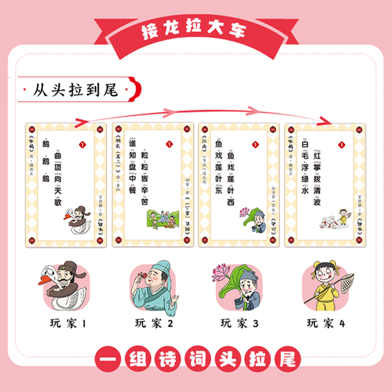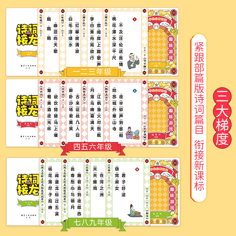 诗词接龙-原来诗词也能这么玩全套4册 中小学生必背古诗1-2-3-4-5-6-7-8-9年级注音版课外阅读书籍儿童漫画版读古诗词读物老师推荐