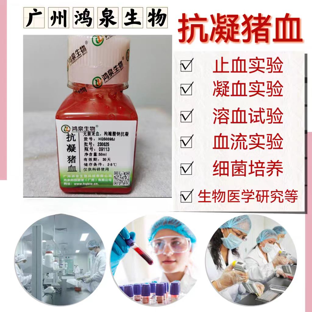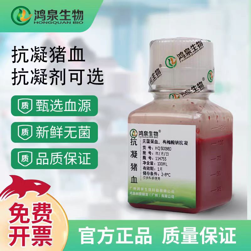 抗凝猪血新鲜无菌凝血溶血实验造血栓科研实验猪血试剂鸿泉生物