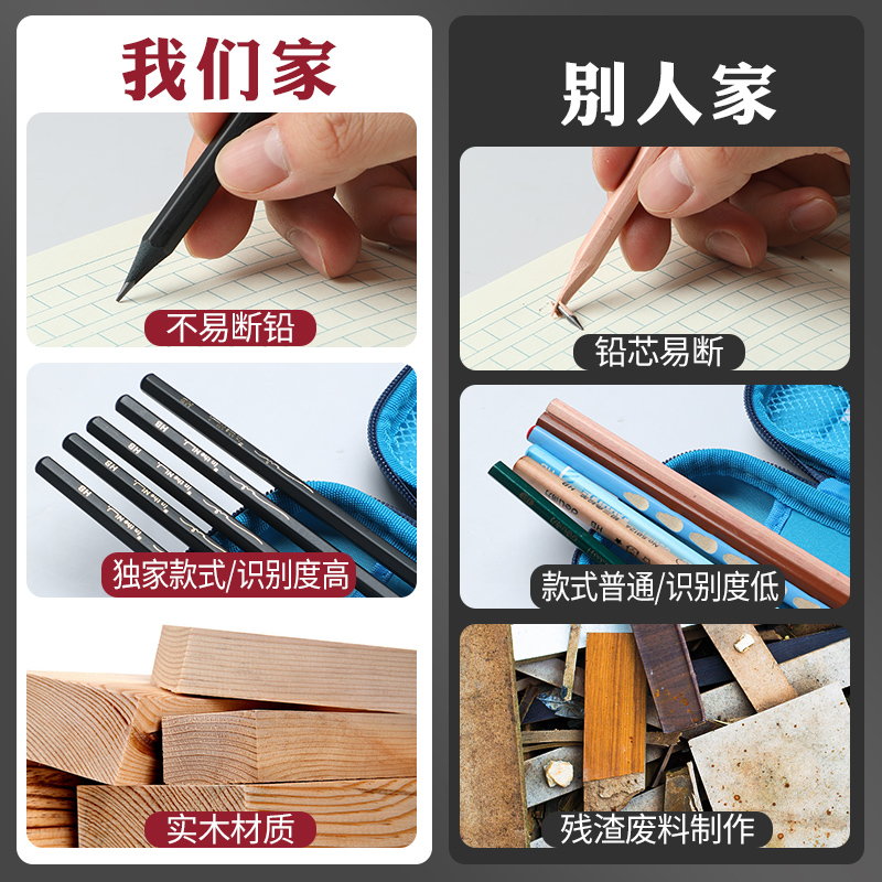 Nusign纽赛黑木铅笔小学生专用hb铅笔2b学生一二年级学习用品考试美术素描得力高端写字安全无毒正姿练字绘画