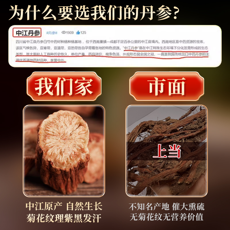 丹参中药材正品干货养生茶紫丹参粉丹生非特级野生丹参片发汗国货