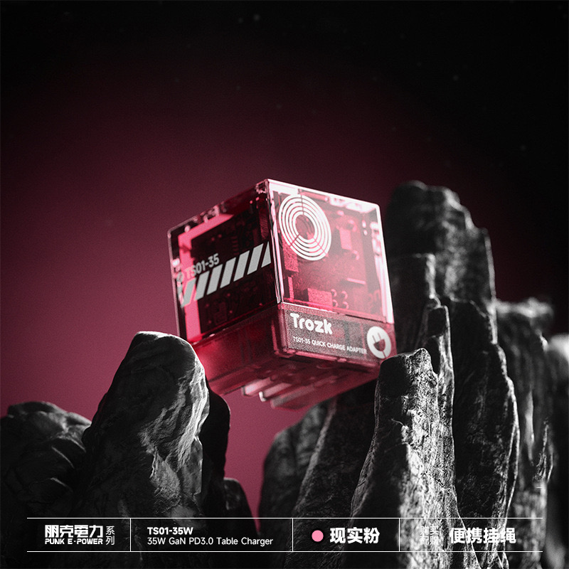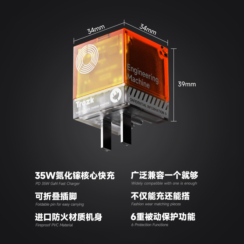 Trozk特洛克朋克电力无限宝石充电头35W氮化镓快充插头透明充电器适用苹果iphnoe15pro手机平板iad