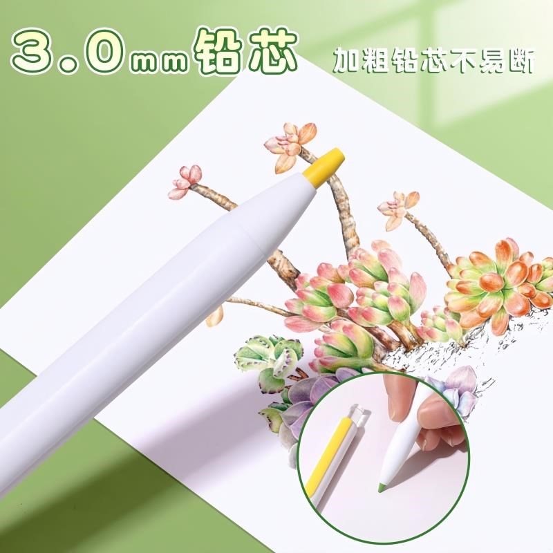 按动可擦彩色铅笔按动免削彩色铅笔美术生小学生画 画画 画笔油性