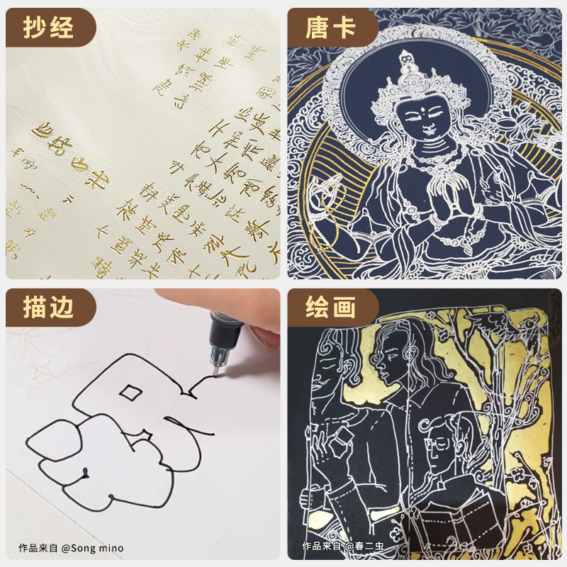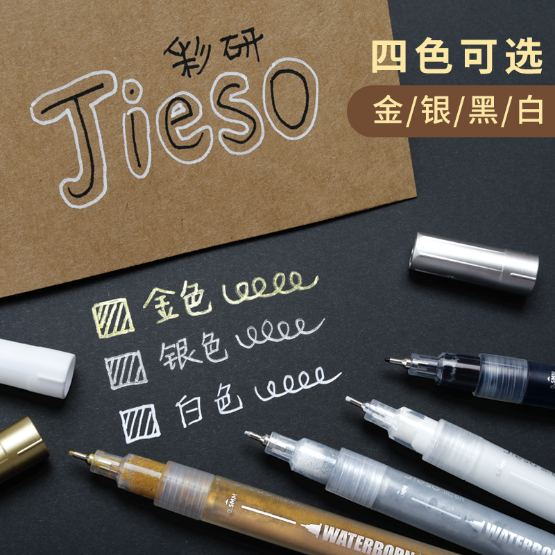 彩研大容量抄经笔水性颜料金/银/黑/白四色0.5mm阀门式可加墨练字笔修身养性硬笔书法多色描经笔可重复灌墨