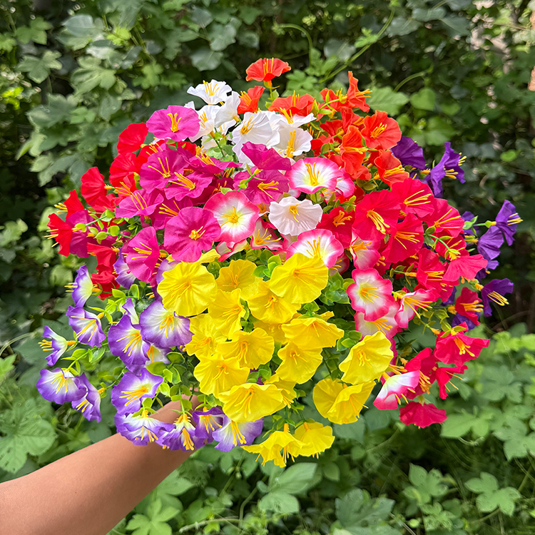 仿真花尤加利紫罗兰牵牛花塑料假花束单支把花箱花坛工程插花装饰