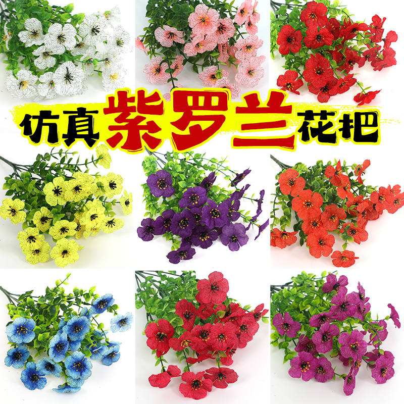 仿真尤加利春草紫罗兰茶花牵牛花薰衣草塑料假花花坛装饰室内摆件