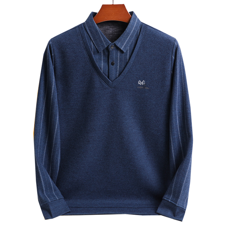 红蜻蜓中年男士毛衣加绒加厚假两件新款保暖内搭爸爸装针织打底衫