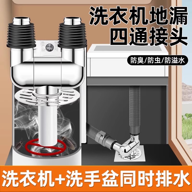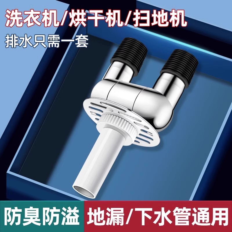 洗衣机烘干机下水管圆形地漏接头二合一排水配件可旋转三通防返水