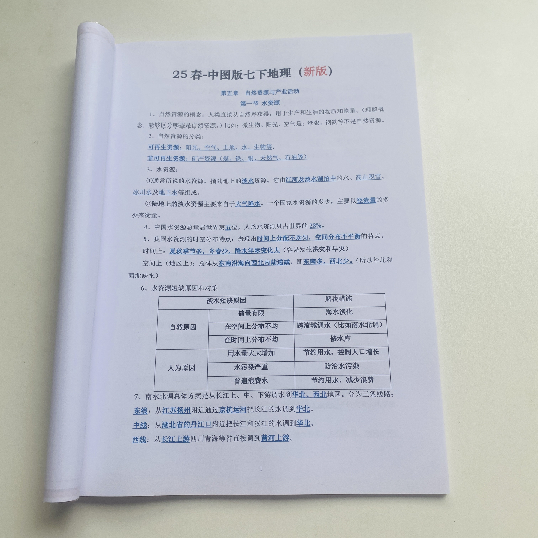 2025年新改中图版初中七八年级上下册地理重点知识点总结背诵复习