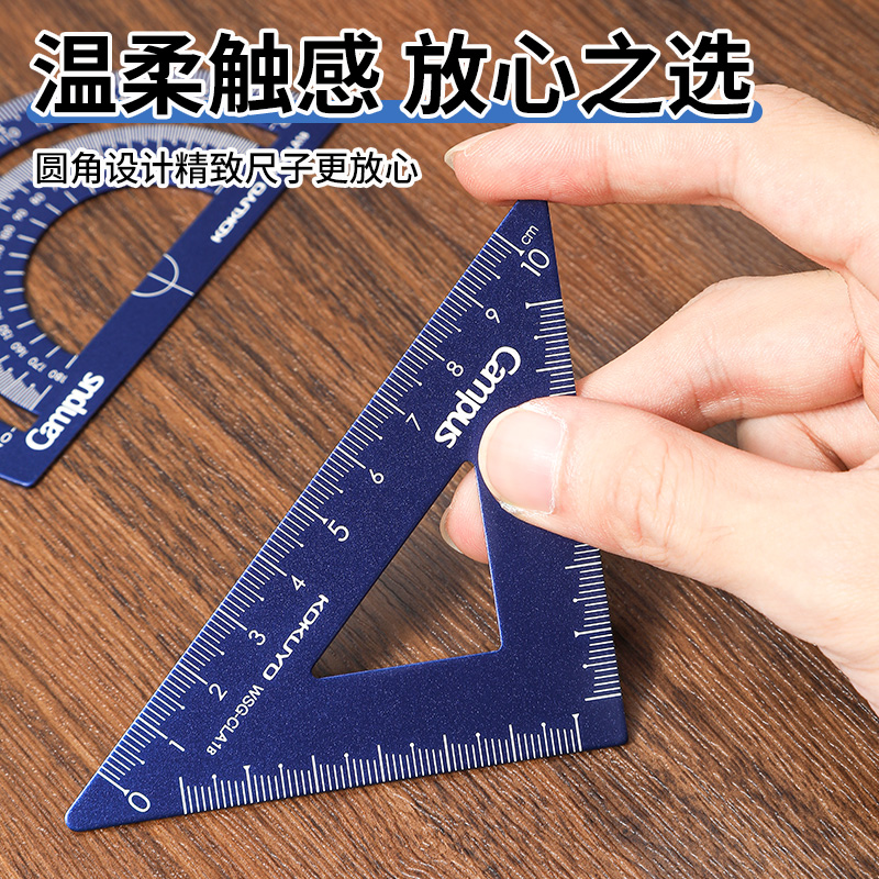 日本KOKUYO国誉Campus铝合金套尺15cm直尺三角板量角器中小学生一年级多功能高精度尺子测量工具圆角不易伤手