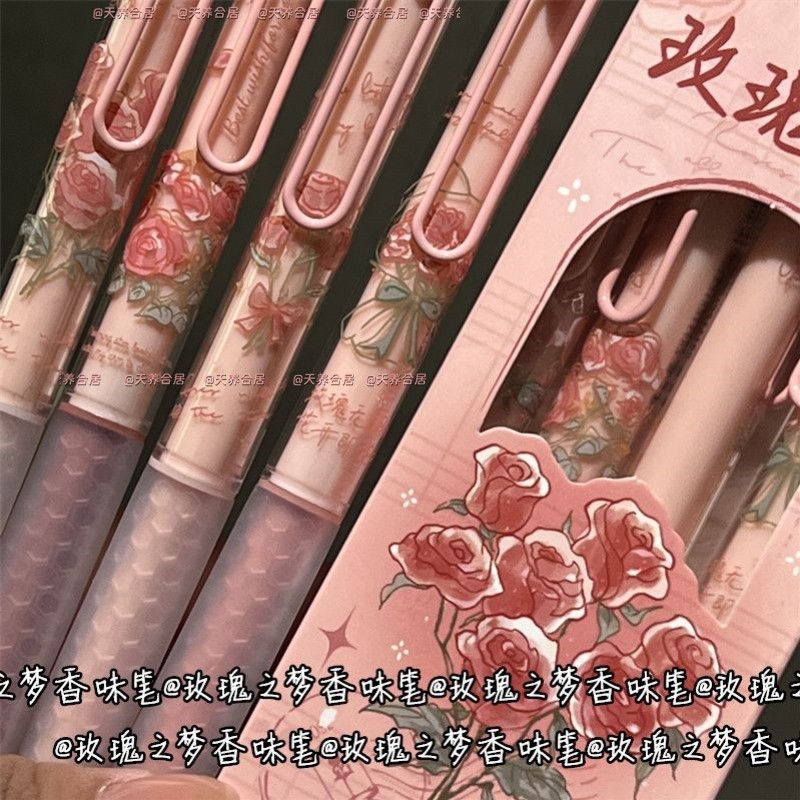 2025新款女生少女心小学生玫瑰之梦香味按动笔ins风高颜值少女心黑色速干刷题笔考试0.5黑笔