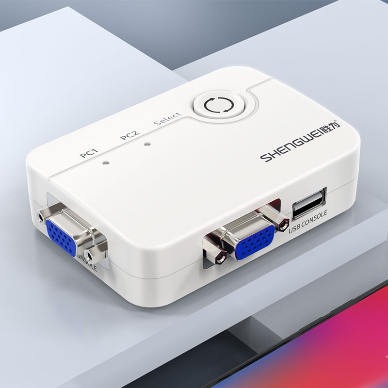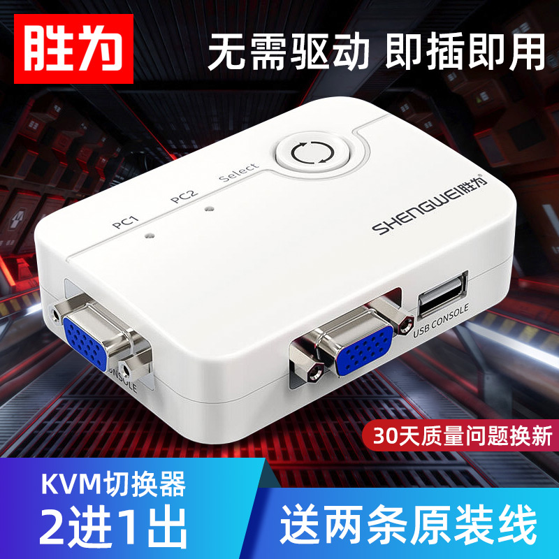 胜为kvm切换器一拖二vga2口双电脑显示器二合一笔记本打印机共用两进一出高清音视频网络共享转换键盘鼠标usb