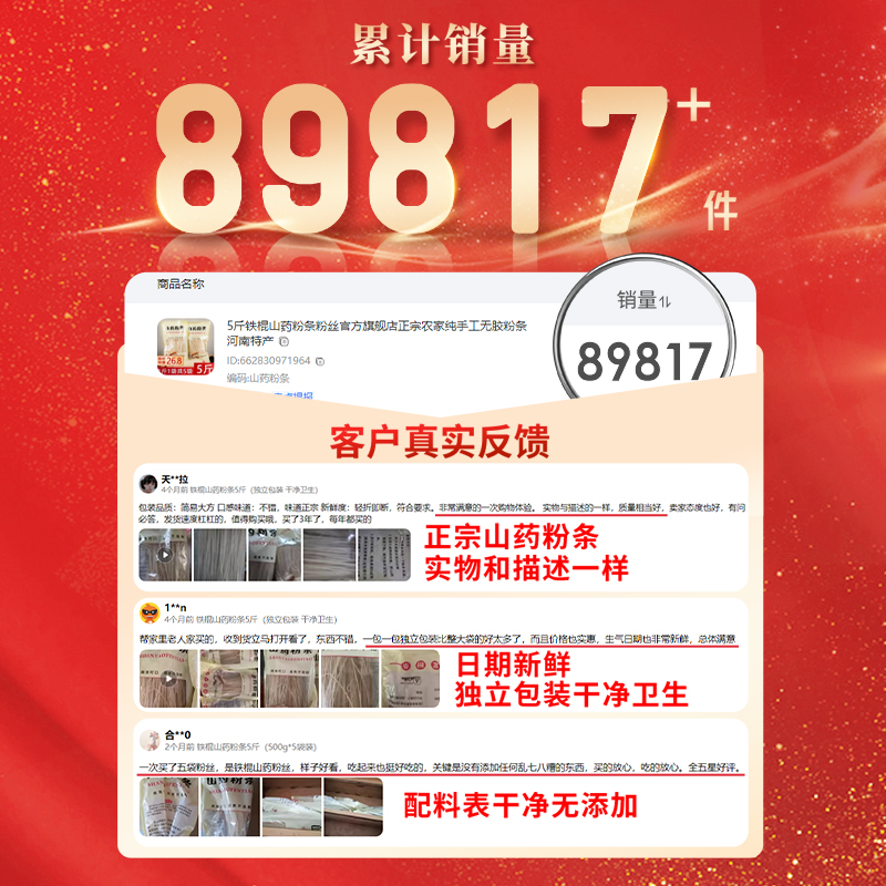 5斤铁棍山药无添加粉条官方旗舰店农家红薯手工粉条河南特产粉皮