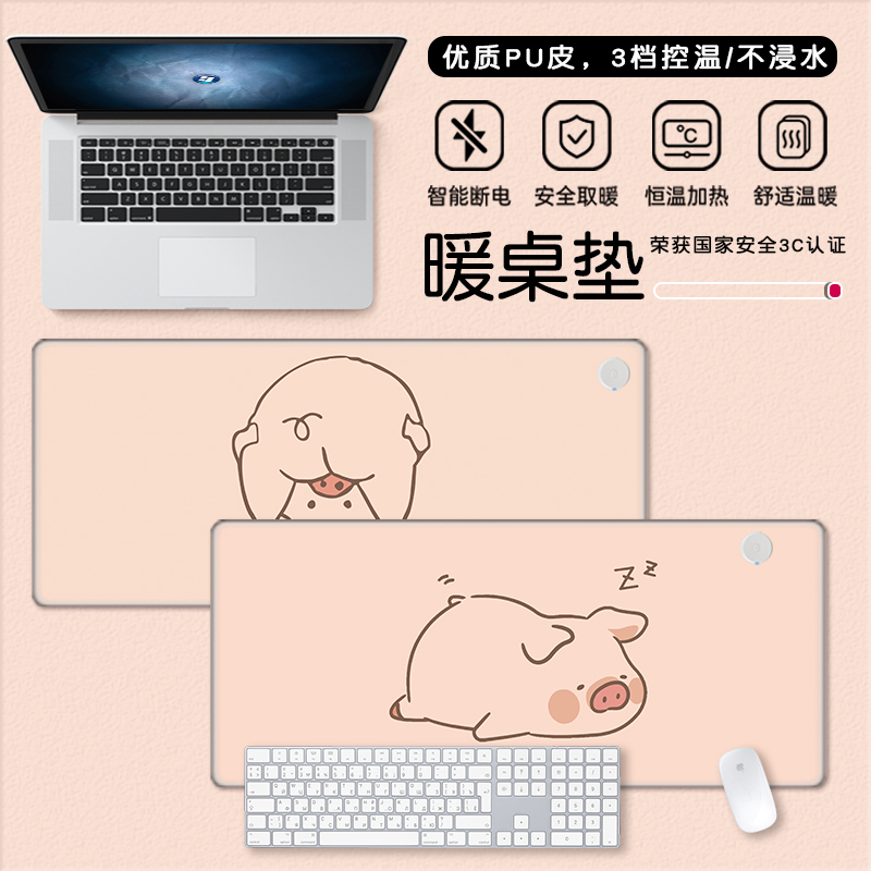 lulu猪冬季加热鼠标垫超大号可爱卡通简约冬天发热暖色办公桌面垫