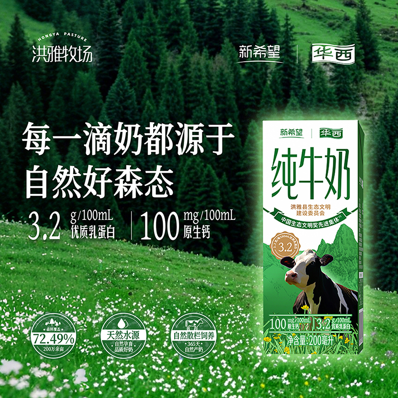 6月产 新希望纯牛奶整箱批发华西洪雅牧场200ml*10盒装