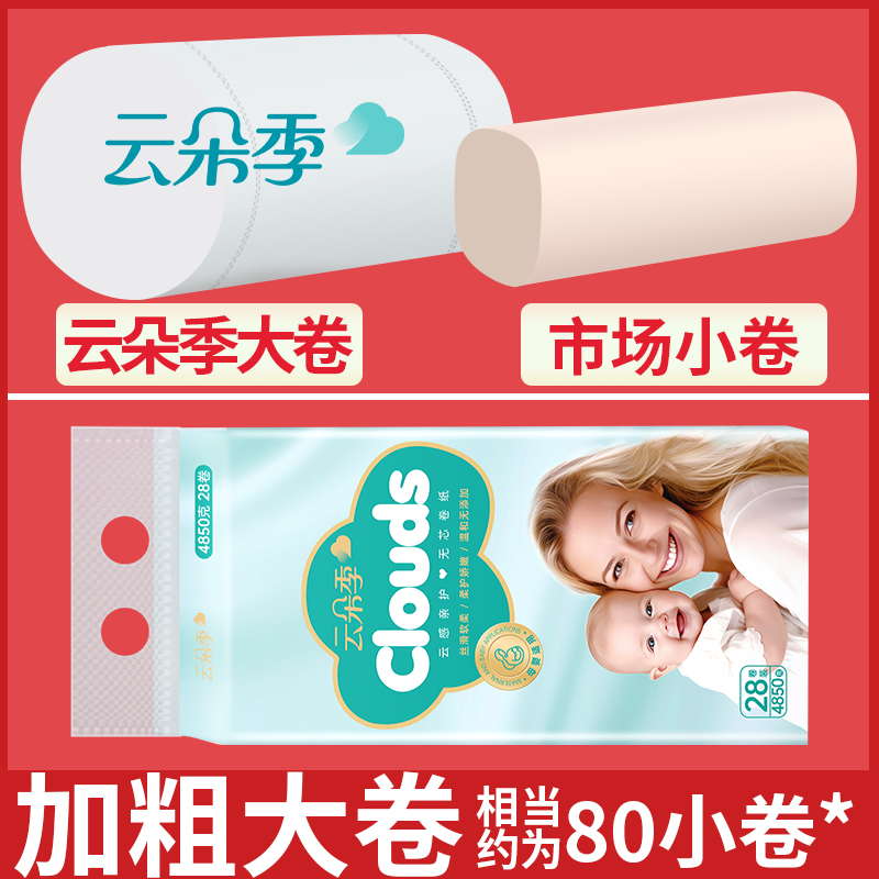 云朵季9.7斤无芯卷纸5层家庭装厕所纸巾家用卫生间用纸实惠装手纸