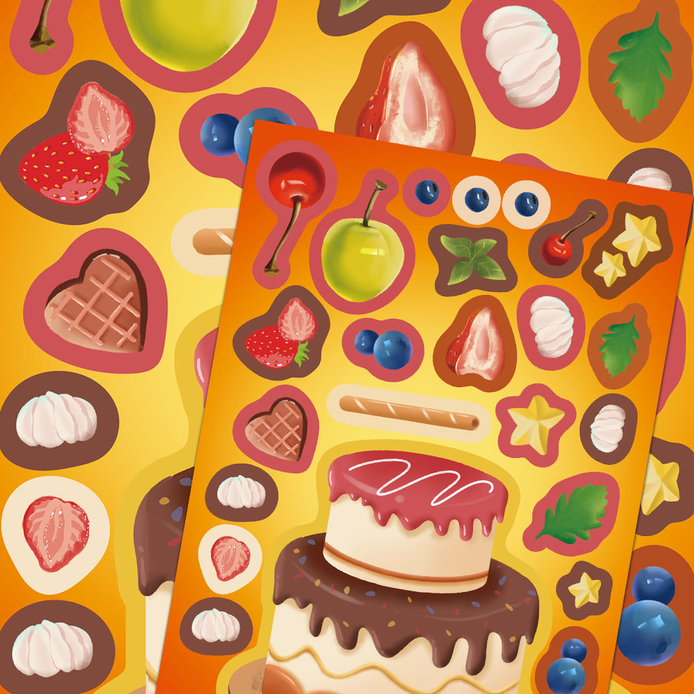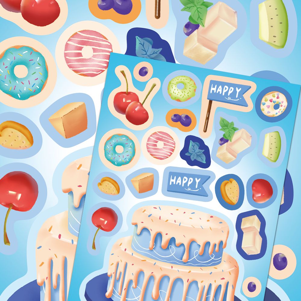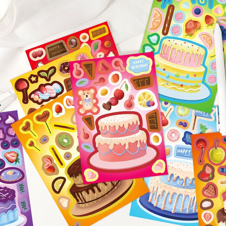 美味千层蛋糕拼图贴纸生日快乐儿童手账DIY装饰创意动脑拼图贴画