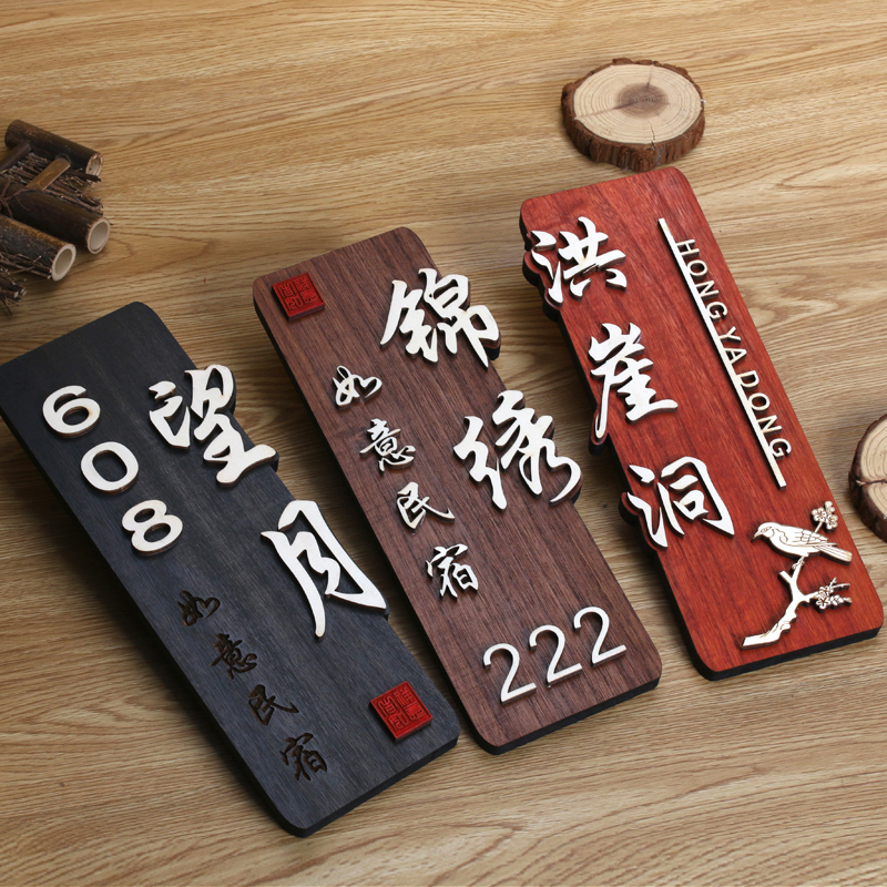 实木中式包厢门牌定制仿古民宿酒店饭店包间包房个性创意木牌标识牌房间宿舍餐厅木质挂牌家用别墅宾馆号码牌