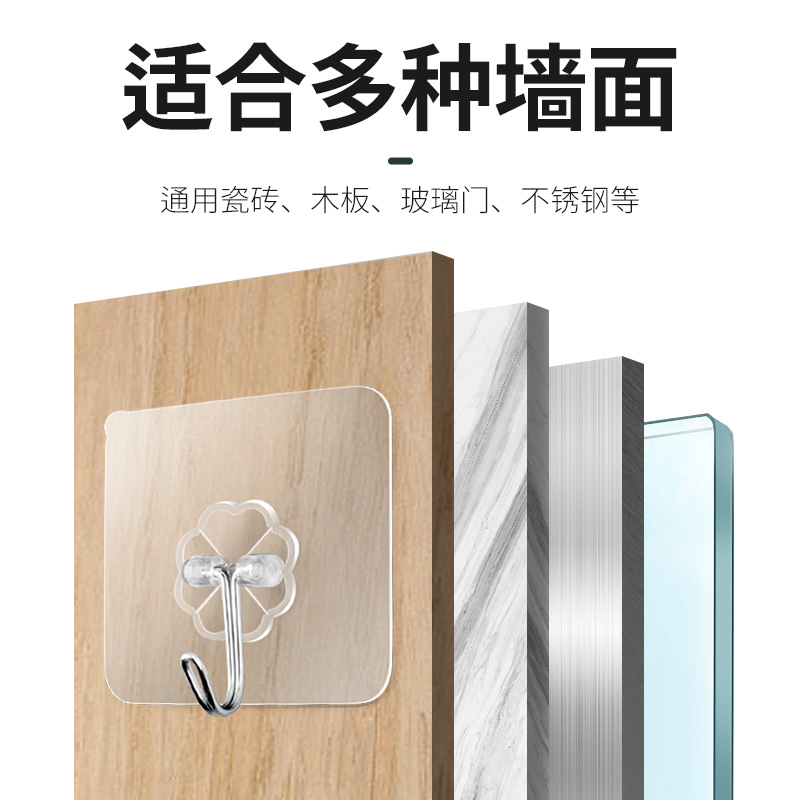强力双面胶高粘度墙壁专用挂勾 浴室厨房墙面吸盘承重粘钩 透明牢固强力防水免打孔强力无痕不锈钢挂钩