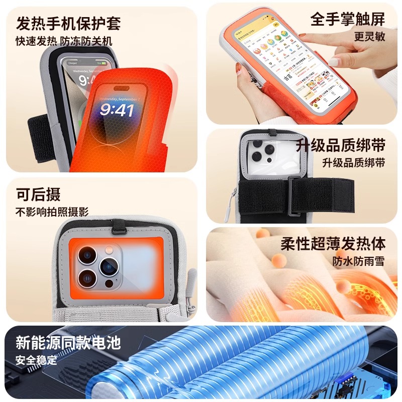 手机保暖套加热包电话暖宝宝防冻防关机冬季保温袋北方雪乡低温发热壳户外工作防寒神器暖宝壳可触屏手机暖袋