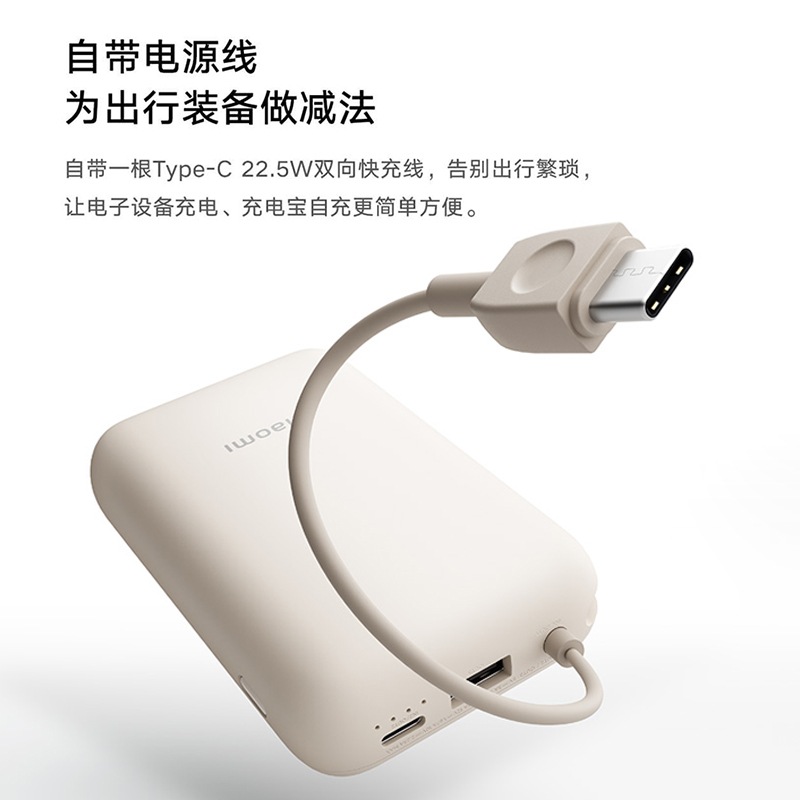 【3C认证-可上飞机】小米充电宝10000毫安超薄小巧便携自带线双向快充22.5W移动电源适用华为苹果超大容量