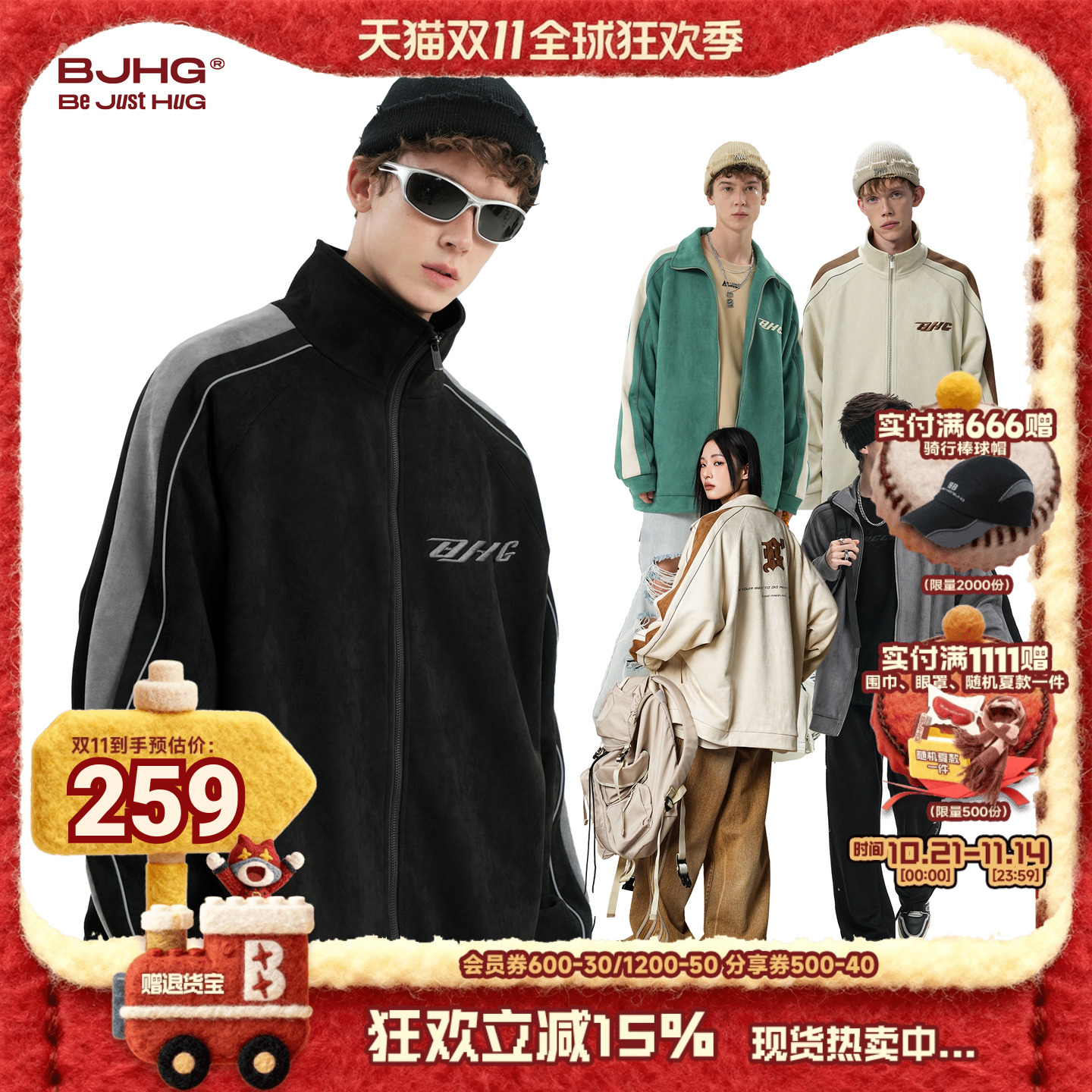 BJHG不计后果外套男款秋新款麂皮绒休闲情侣美式运动夹克棒球服女