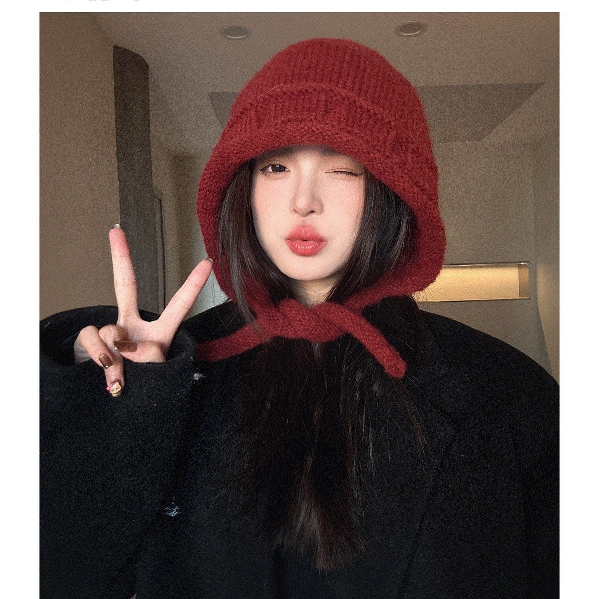 拉法帽子女秋冬天保暖针织护耳骑行防寒毛线帽雷锋帽秋季可折叠