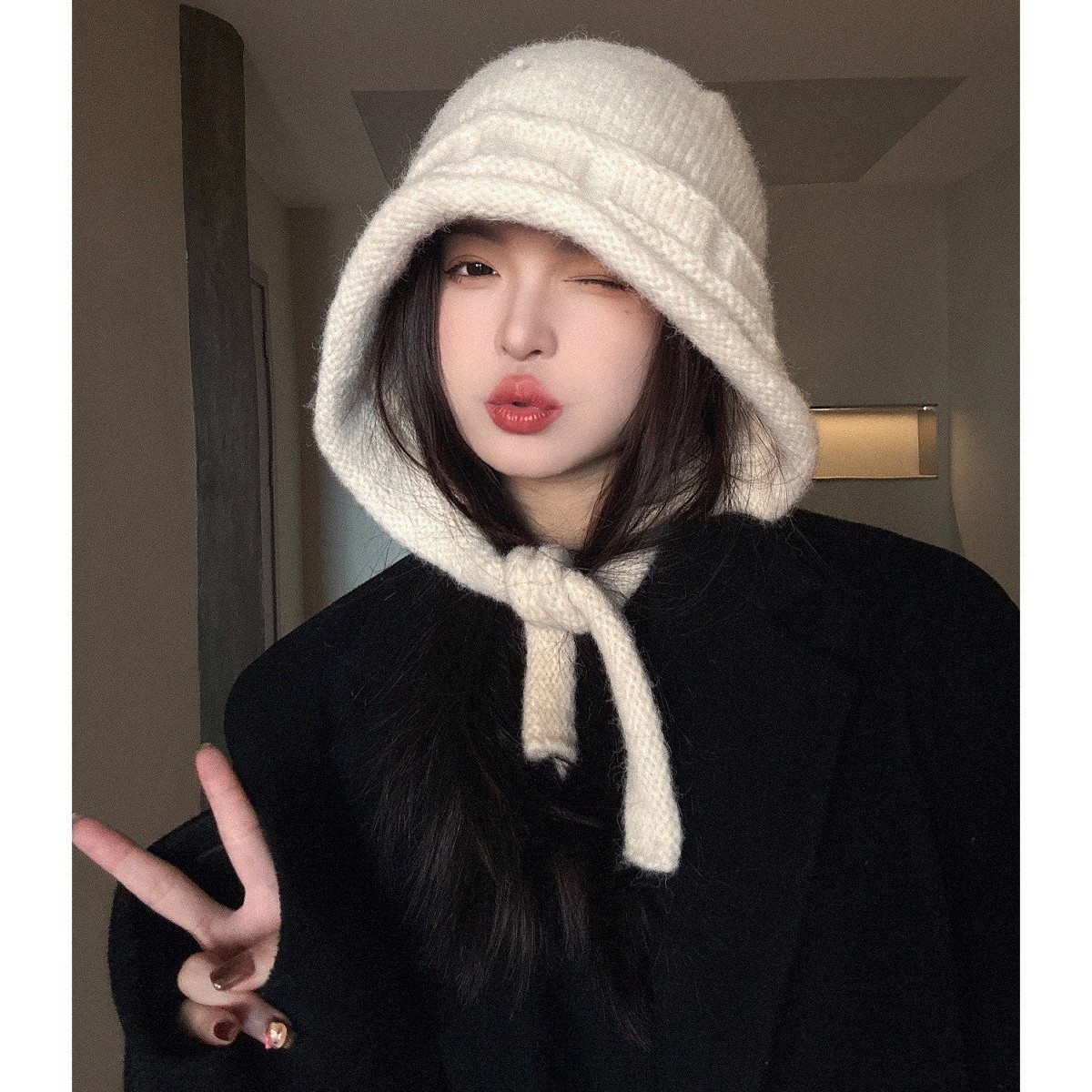 可爱小绵羊毛绒帽女冬季新款防寒保暖帽子围巾一体加厚护耳雷锋帽