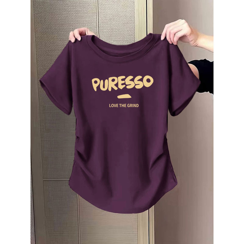 正肩短袖女t恤2025新款大码女装胖mm显瘦修身收腰紫色上衣女夏T恤
